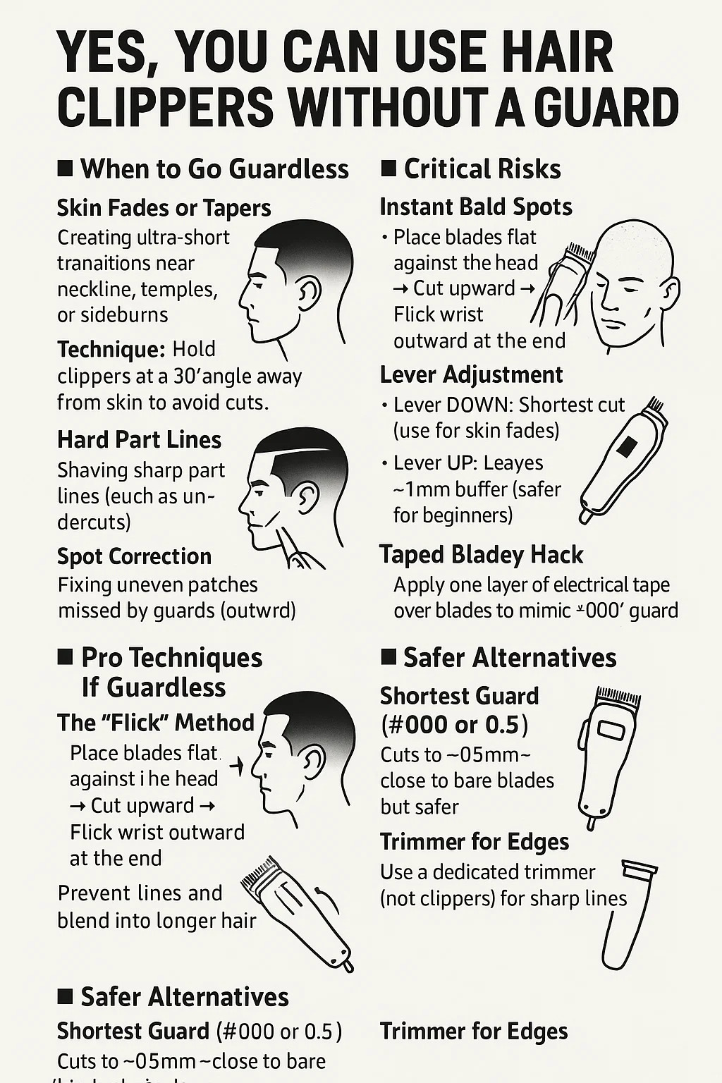 Ja, du kan använda hårklippare utan vakt, men det kräver försiktighet och specifika tekniker. Här är vad du behöver veta: