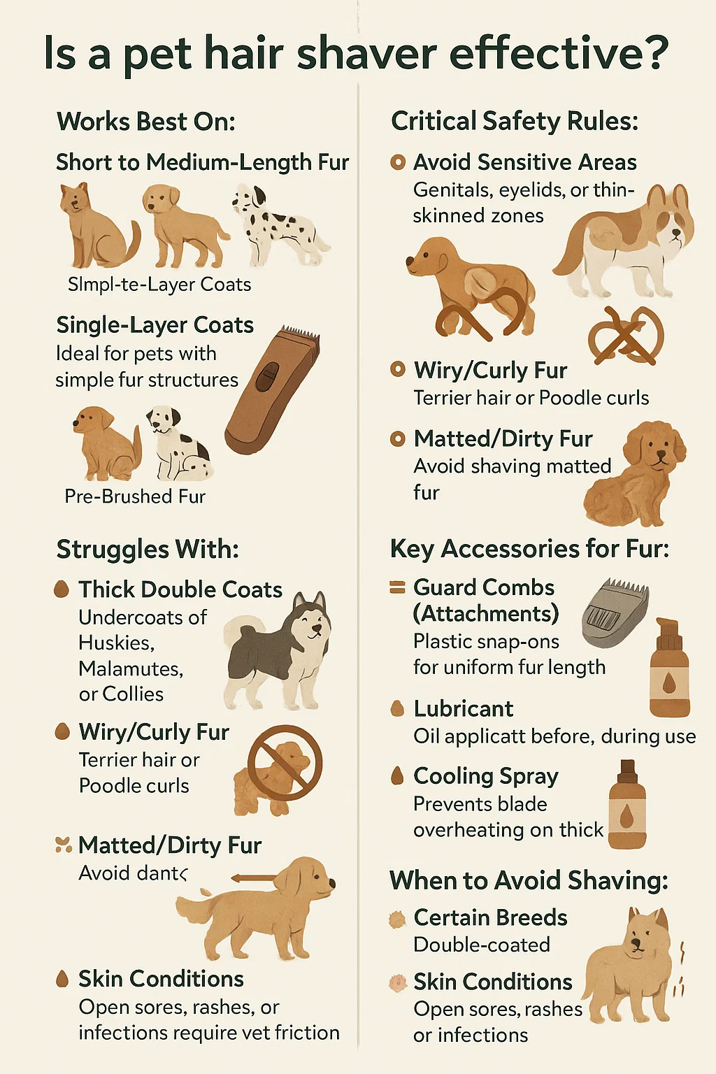 Ja, a husdjurshår rakapparat (även kallad husdjursklippare eller trimmare) är specifikt utformade för att arbeta med djurpäls, men effektiviteten beror på päls, verktygskvalitet och teknik. Nedan följer en detaljerad uppdelning: