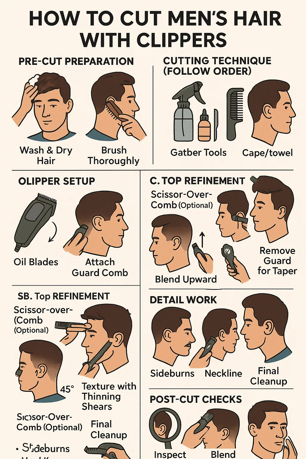 Här är en steg-för-steg-guide för att klippa mäns hår med hårklippare :