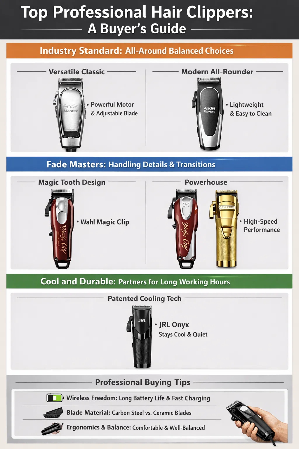 Om du letar efter professionell kvalitet hårklippare , frisörer prioriterar vanligtvis kraft, knivskärpa och balanserad hantering. Här är några av de bästa professionella modellerna på marknaden för närvarande: